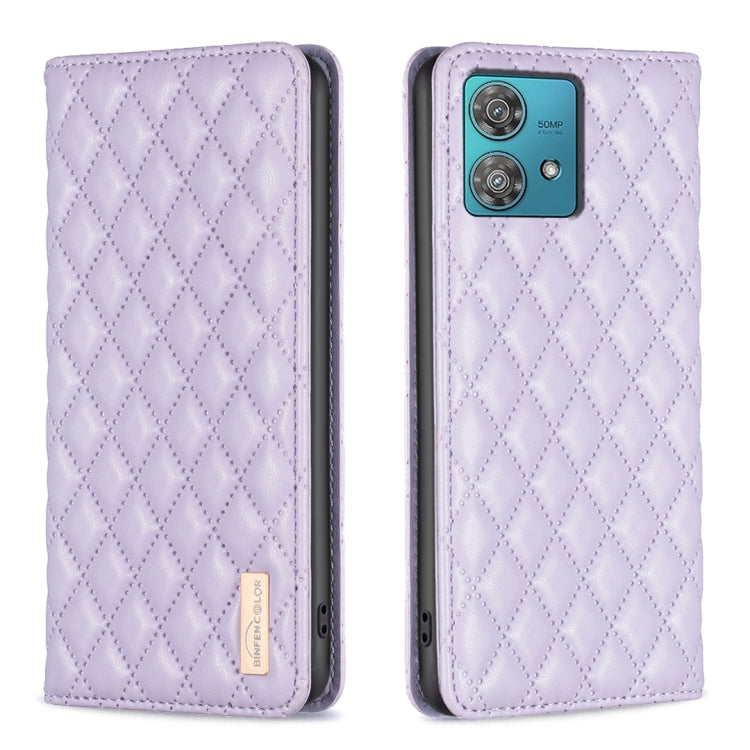Funda para Motorola Edge 40 Neo con Tapa de Cuero Magnético y Diseño Diamond Lattice (Púrpura)