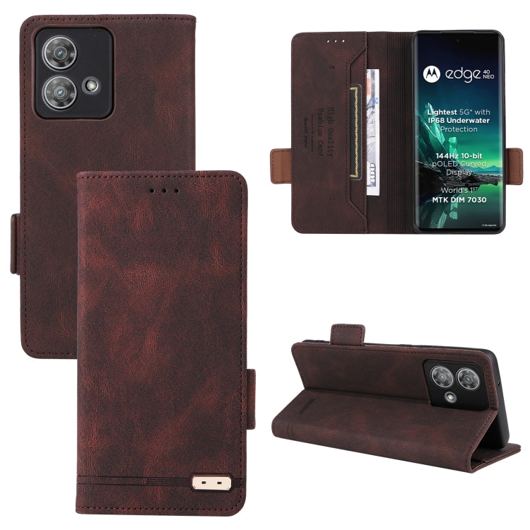 Funda de Cuero para Motorola Edge 40 Neo con Cierre Magnético (Marrón)