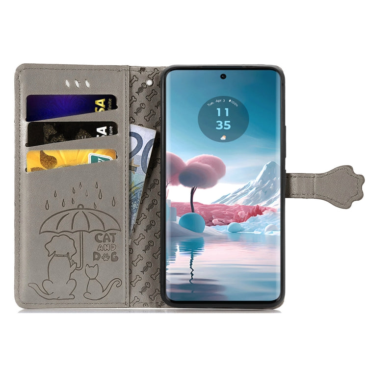 Funda para Motorola Edge 40 Neo de Cuero con Relieve de Perro y Gato (Gris)