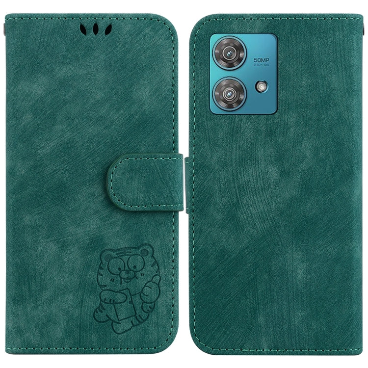 Funda de Cuero para Motorola Edge 40 Neo Little Tiger en Relieve (Verde)