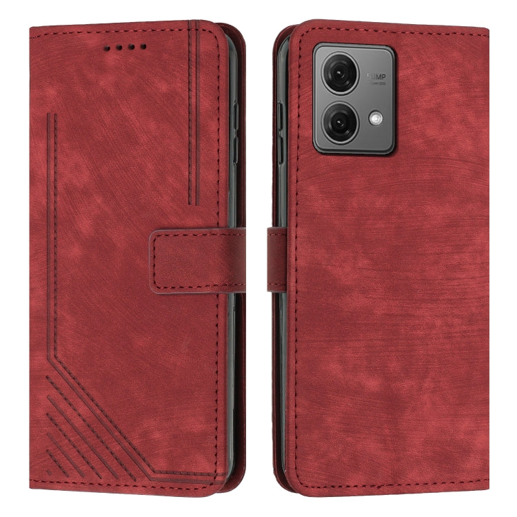 Funda de Cuero para Motorola Edge 40 Neo con Patrón de Rayas y Cordón (Rojo)
