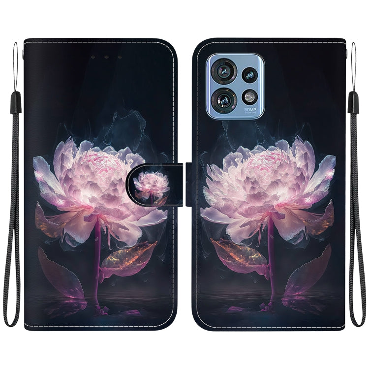 Funda de Cuero para Motorola Edge 40 Pro con Dibujo Coloreado y Textura de Cristal (Peonía Púrpura)
