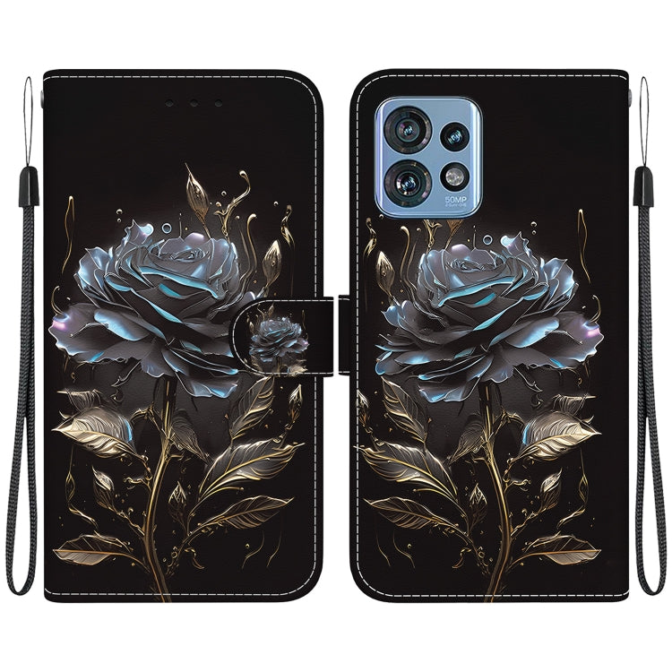 Funda de Cuero para Motorola Edge 40 Pro con Dibujo Coloreado y Textura de Cristal (Rosa Negra)