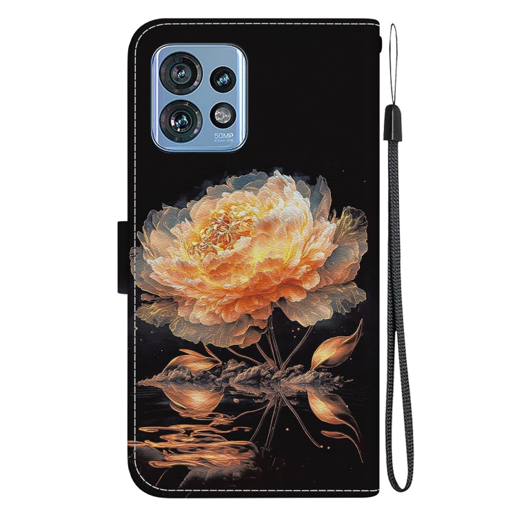Funda de Cuero para Motorola Edge 40 Pro con Dibujo Coloreado y Textura de Cristal (Peonía Dorada)