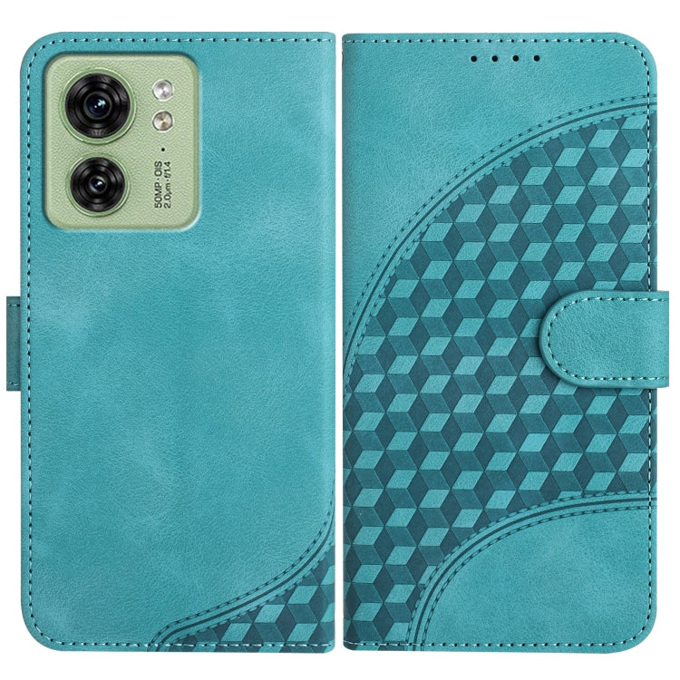 Funda de Cuero Motorola Edge 40 Yx0060 con Relieve Cabeza de Elefante y Cordón (Azul Claro)