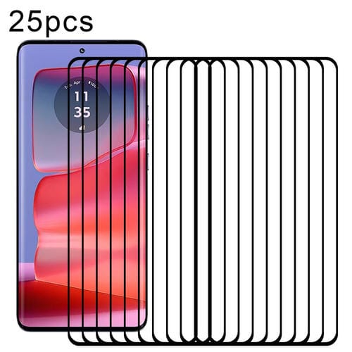 Película de Vidrio Templado + Edge Glue para Motorola Edge 50 Pro 25 Piezas 9H HD Borde Curvo 3D (Negro)