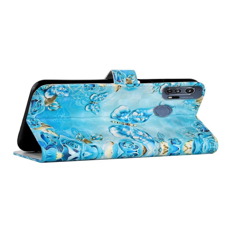 Funda de Cuero para Motorola Edge + con Dibujo 3D en Relieve al Óleo (Mariposas Azules)