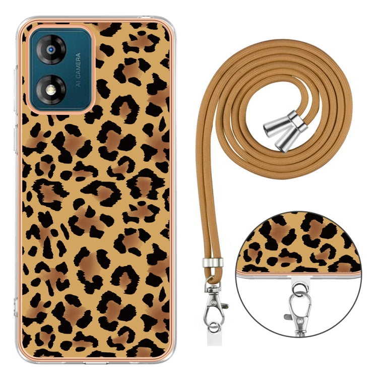 Estuche para Motorola Moto E13 Imd Doble Cara con Galvanoplastia y Cordón (Leopardo)