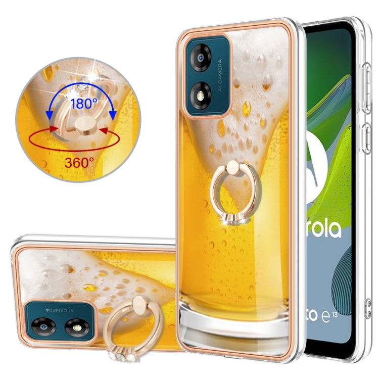 Funda para Motorola Moto E13 Galvanoplastia IMD Doble Cara con Soporte para Anillo (Cerveza de Barril)