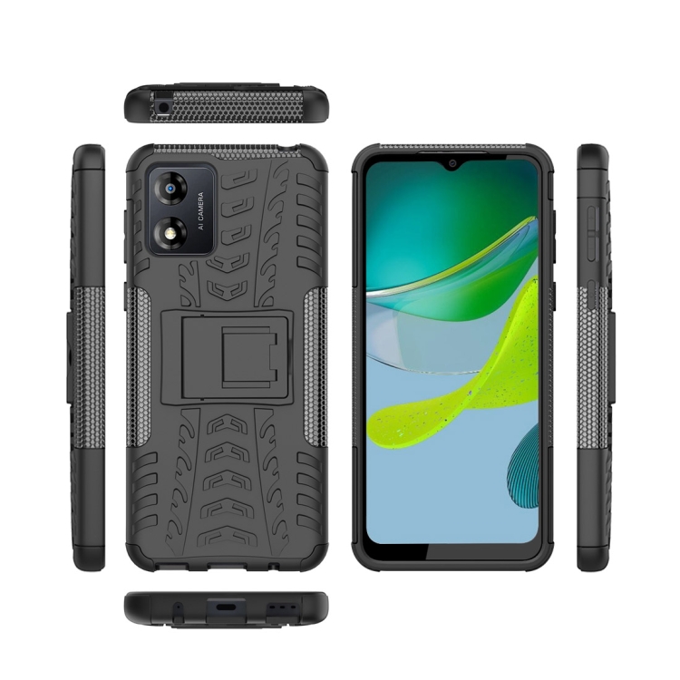 Funda para Motorola Moto E13 TPU + PC con Soporte Tire Texture (Negro)