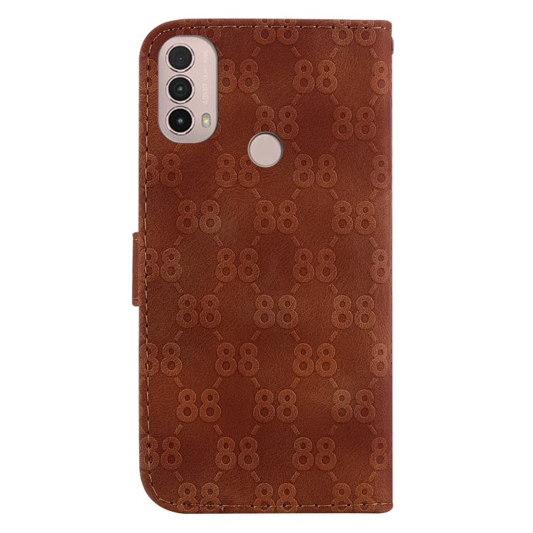 Estuche para Motorola Moto E20 E30 E40 de Cuero en Relieve Doble Forma de 8 (Marrón)