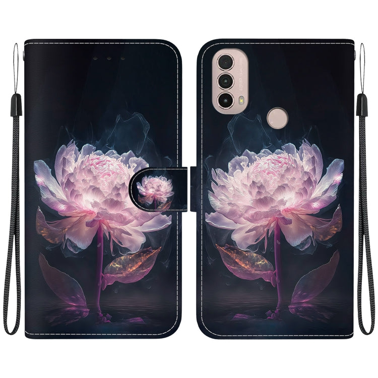 Funda para Motorola Moto E20 E30 E40 Cuero con Dibujo Textura de Cristal (Peonía Púrpura)
