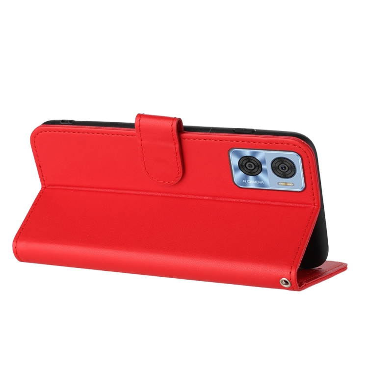 Funda de Cuero para Motorola Moto E22 Datura Flower con Tapa en Relieve (Rojo)