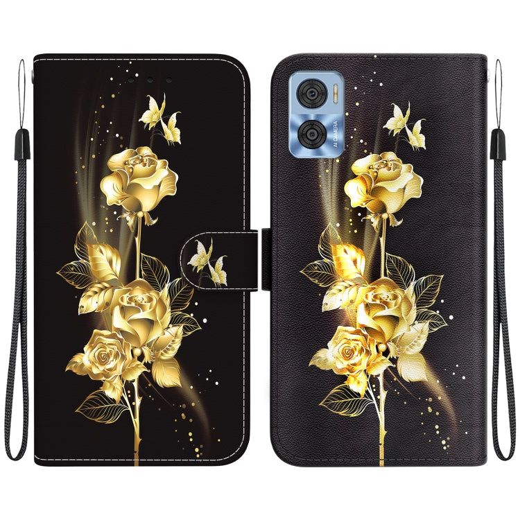 Funda para Motorola Moto E22 / E22I de Cuero con Dibujo Coloreado y Textura de Cristal (Mariposa Dorada Rosa)