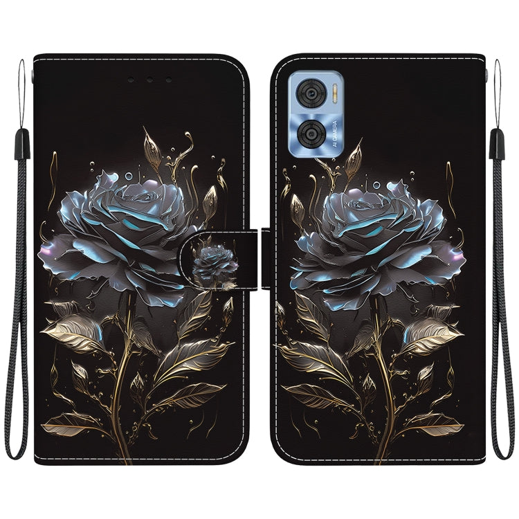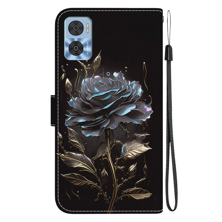 Funda para Motorola Moto E22 / E22I de Cuero con Dibujo y Textura de Cristal (Rosa Negra)
