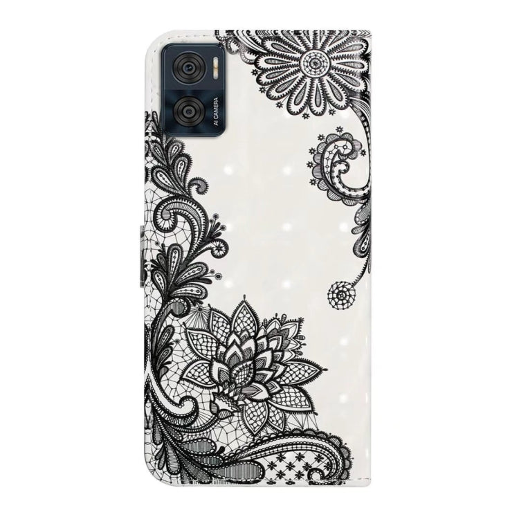 Funda de Cuero para Motorola Moto E22 con Dibujo 3D en Relieve al Óleo (Flor de Encaje)