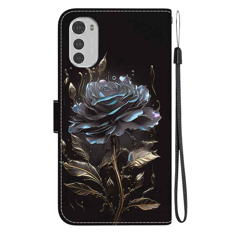 Funda de Cuero para Motorola Moto E32 con Dibujo Coloreado y Textura de Cristal (Rosa Negra)