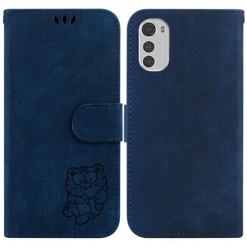 - 1x Funda de Cuero para Motorola Moto E32 Little Tiger en Relieve (Azul Oscuro)