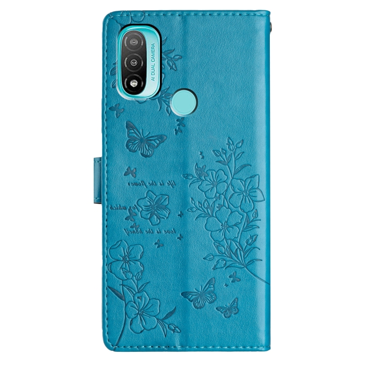 Funda de Cuero para Motorola Moto E40 con Mariposas y Flores (Azul)