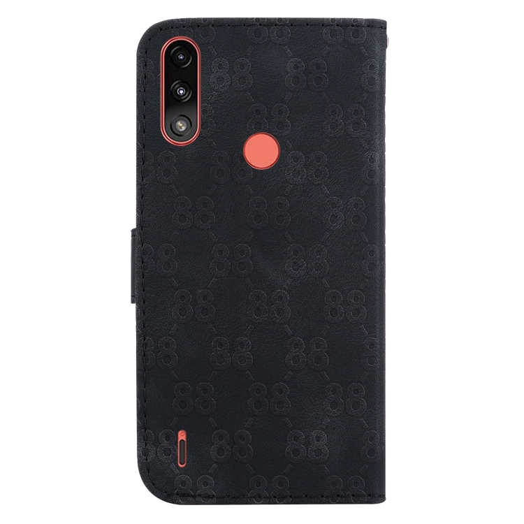 Funda de Cuero para Motorola Moto E7 Power / E7I Power con Relieve Doble Forma de 8 (Negro)