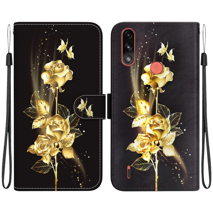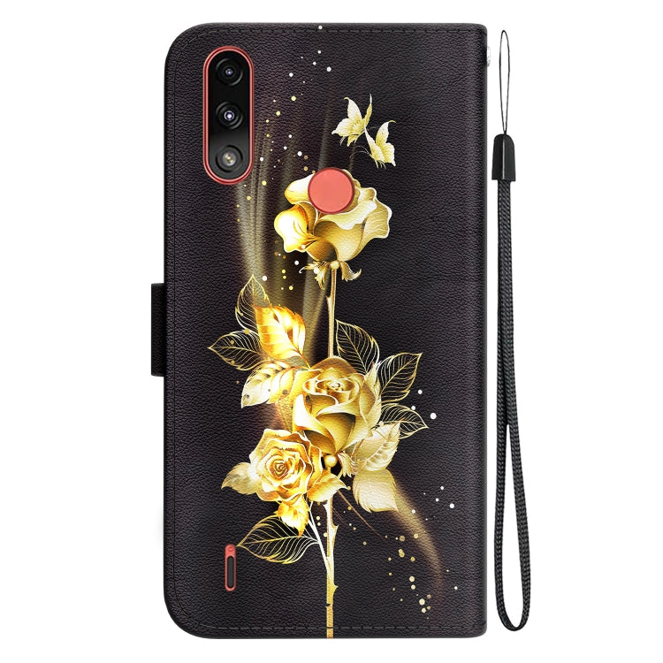 Funda para Motorola Moto E7 Power / E7I Power de Cuero con Dibujo y Textura de Cristal (Mariposa Dorada Rosa)