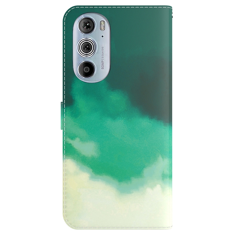Para Motorola Moto Edge 30 Pro WaterCole Pattern Horizontal Flip de cuero Funda telefónica (Cian Green)