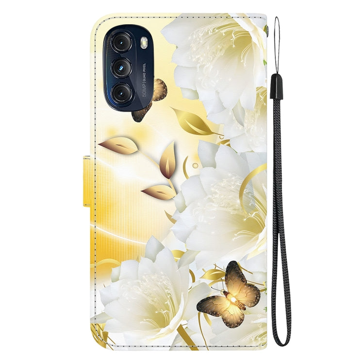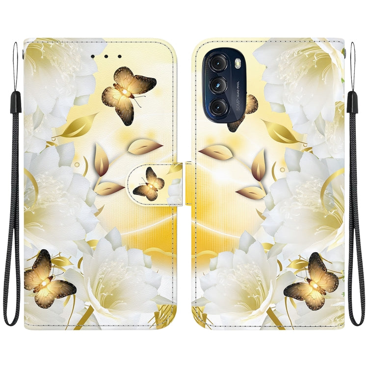 Funda de Cuero para Motorola Moto G 2022 con Dibujo Coloreado y Textura de Cristal (Epiphyllum Mariposa Dorada)
