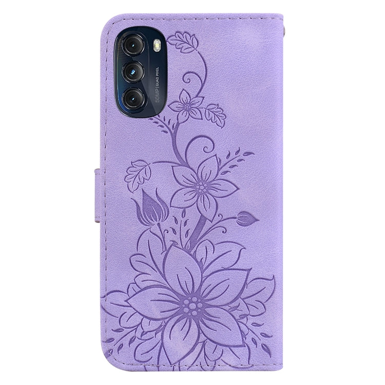 Funda de Cuero con Relieve Lily para Motorola Moto G 2022 (Púrpura)