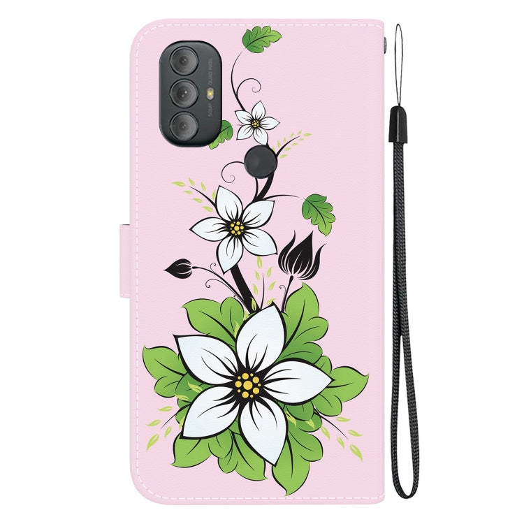Estuche de Cuero para Motorola Moto G Power 2022 con Dibujo Coloreado y Textura de Cristal (Lirio)