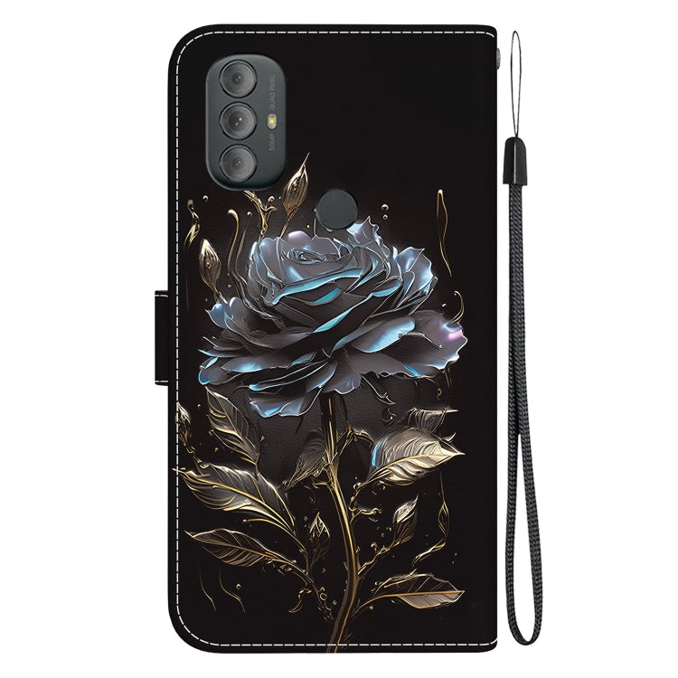 Funda de Cuero para Motorola Moto G Power 2022 con Dibujo Coloreado y Textura de Cristal (Rosa Negra)