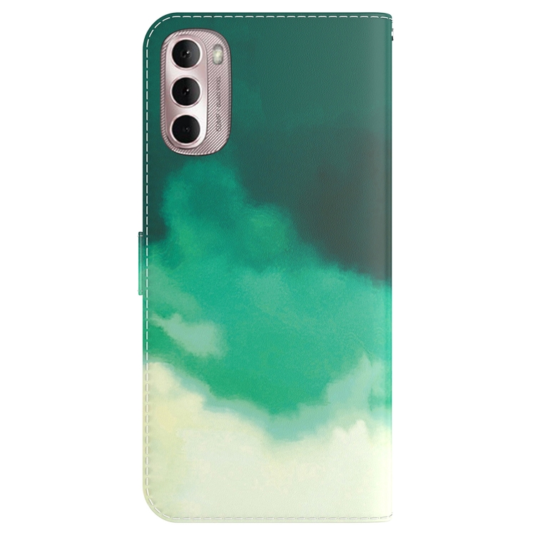 Funda de Cuero para Motorola Moto G Stylus 4G 2022 con Patrón de Acuarela (Cyan Green)