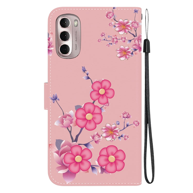 Estuche de Cuero para Motorola Moto G Stylus 4G 2022 con Dibujo Coloreado y Textura de Cristal (Flores de Cerezo)