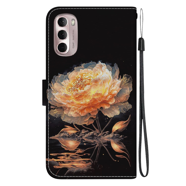 Funda de Cuero Motorola Moto G Stylus 4G 2022 con Dibujo Coloreado y Textura de Cristal (Peonía Dorada)