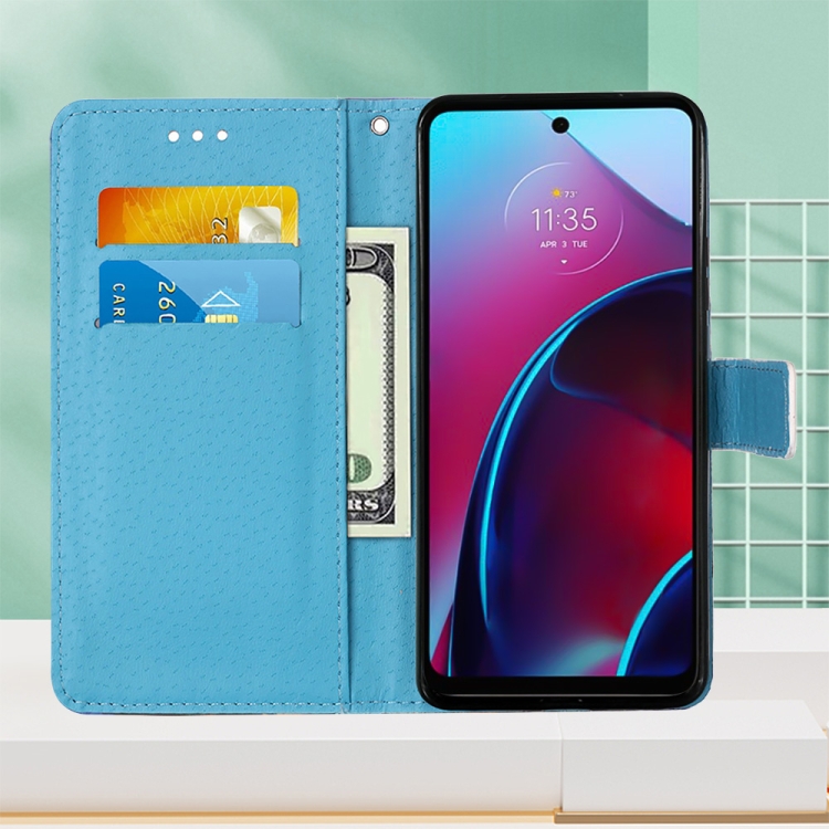 Funda para Motorola Moto G Stylus 5G 2022 Cuero Tejido Liso Dibujo Mariposa Cardíaca