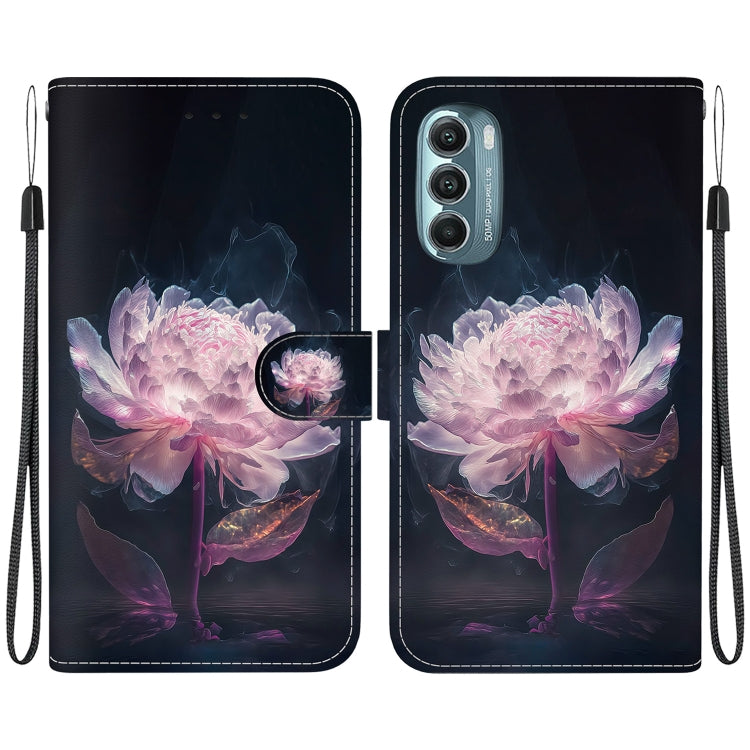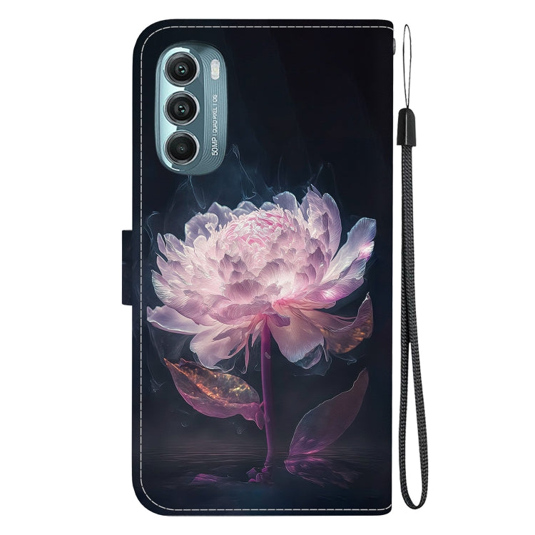 Funda de Cuero para Motorola Moto G Stylus 5G 2022 con Dibujo Coloreado y Textura de Cristal (Peonía Púrpura)