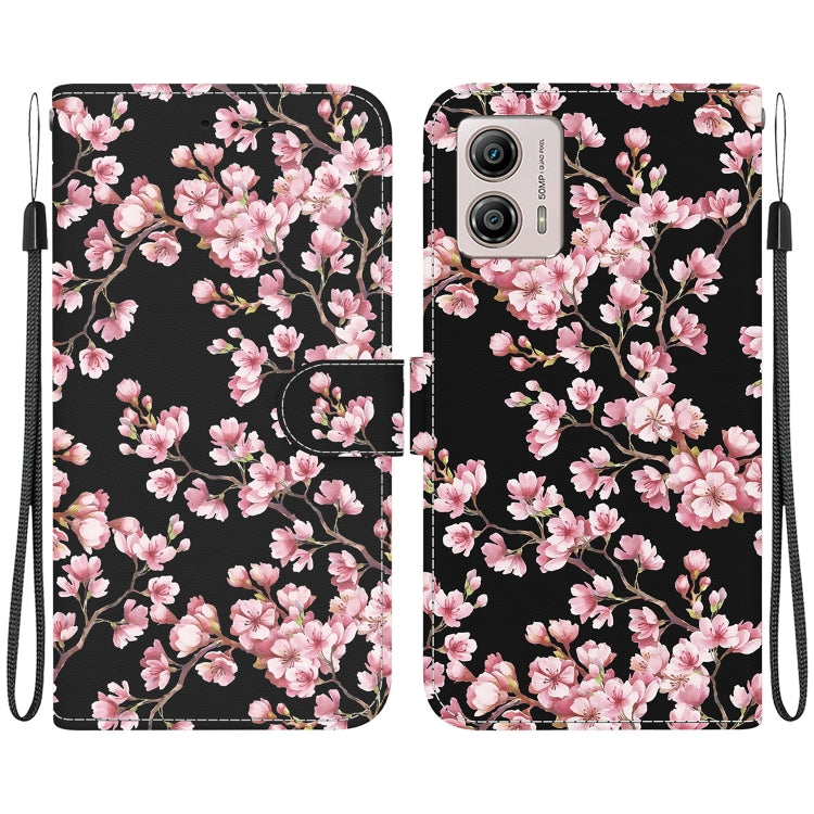 Funda para Motorola Moto G13 / G23 / G53 de Cuero con Dibujo Coloreado y Textura de Cristal (Flor de Ciruelo)