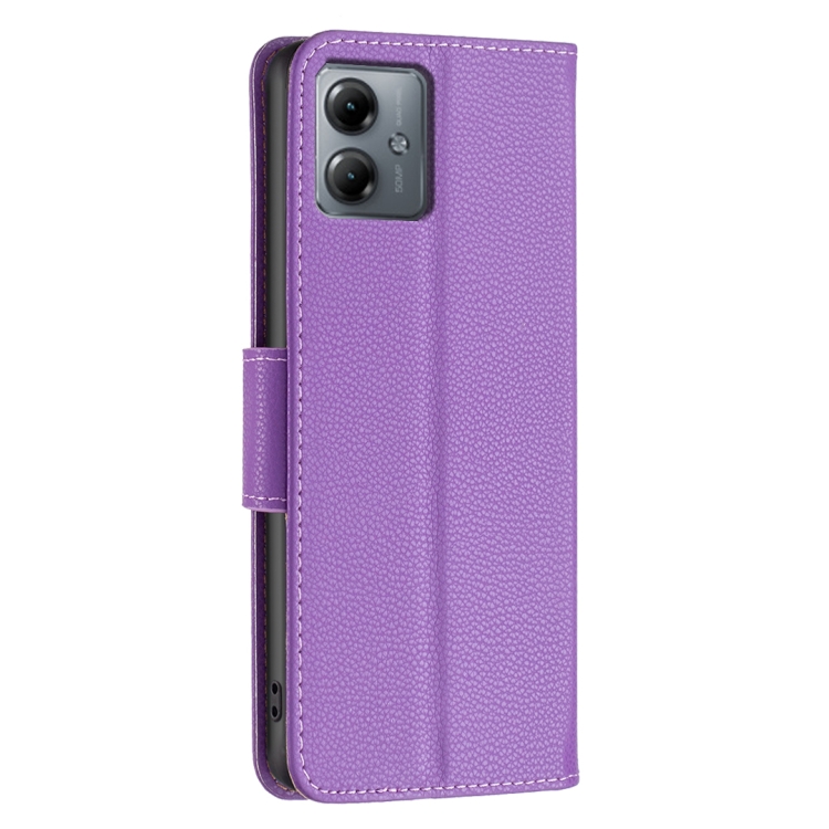 Funda de Cuero Flip para Motorola Moto G14 4G con Textura Litchi (Púrpura)