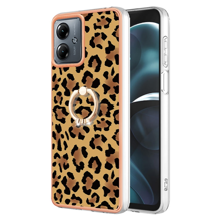 Estuche para Motorola Moto G14 IMD doble cara con galvanoplastia y soporte para anillo (Leopardo)