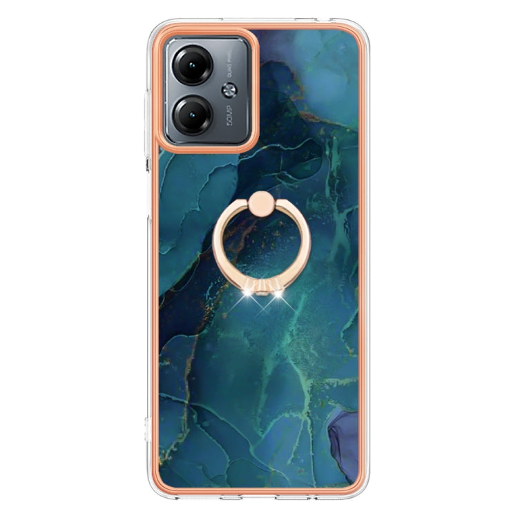 Estuche para Teléfono Motorola Moto G14 Imd Doble Cara Mármol Galvanizado con Anillo (Verde)
