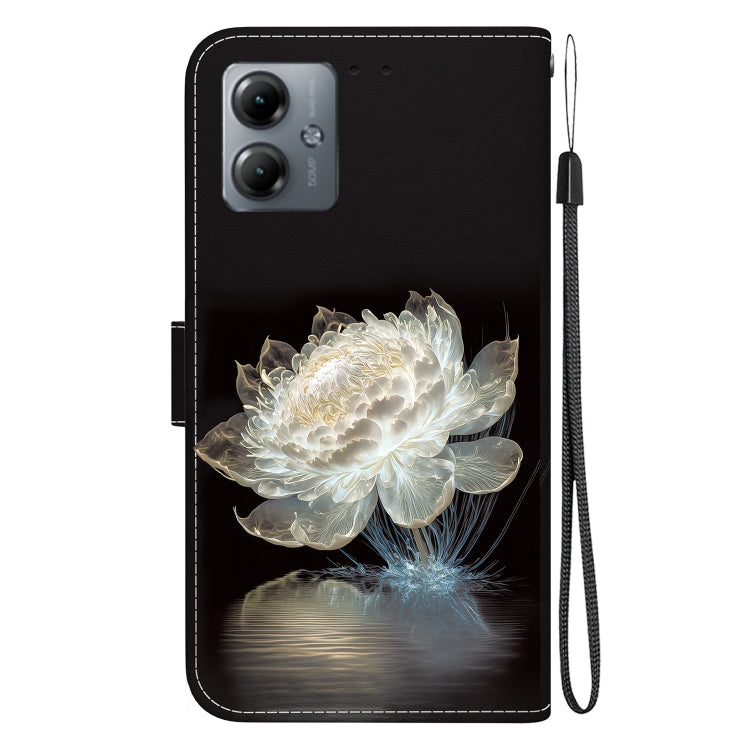 Funda de Cuero para Motorola Moto G14 con Dibujo Coloreado y Textura de Cristal (Peonía de Cristal)