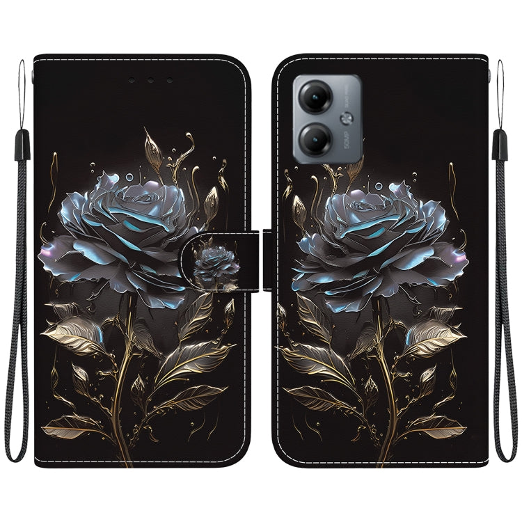 Funda de Cuero para Motorola Moto G14 con Dibujo Coloreado y Textura de Cristal (Rosa Negra)