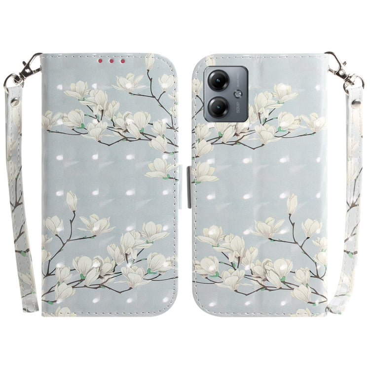 Funda de Cuero para Motorola Moto G14 con Tapa Horizontal y Color 3D (Magnolia)