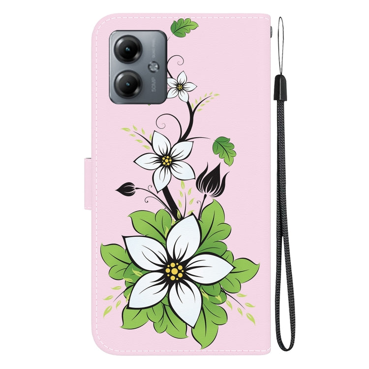 Funda de Cuero para Motorola Moto G14 con Dibujo Coloreado y Textura de Cristal (Lirio)