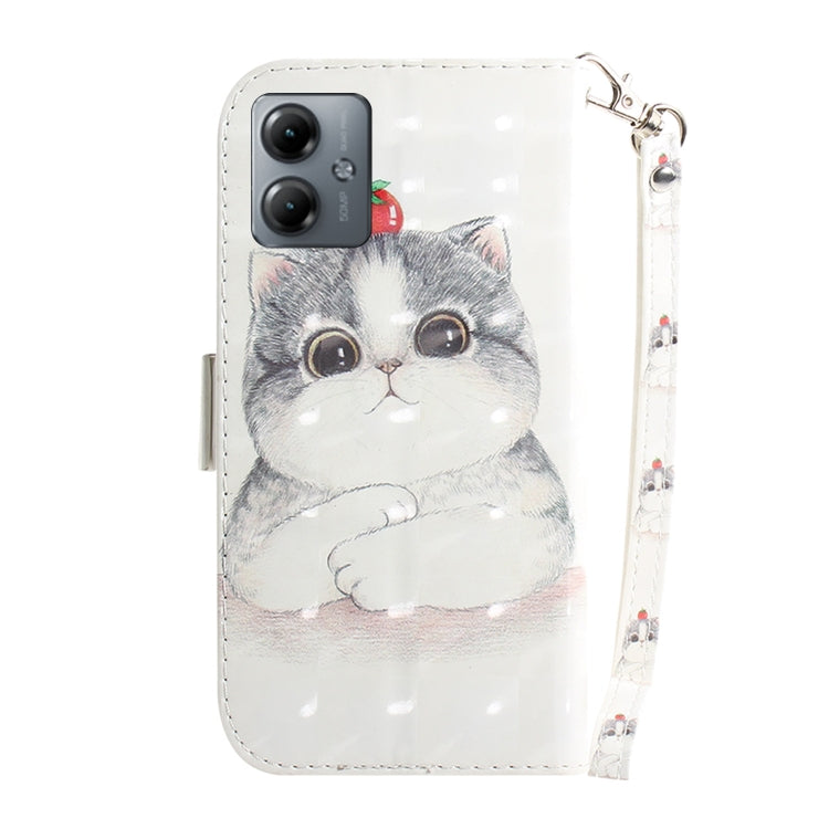 Funda de Cuero para Motorola Moto G14 con Tapa Horizontal y Diseño 3D (Lindo Gato)