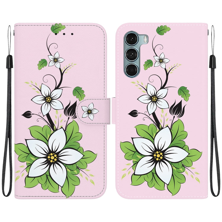 Funda de Cuero para Motorola Moto G200 5G con Dibujo Coloreado y Textura de Cristal (Lirio)