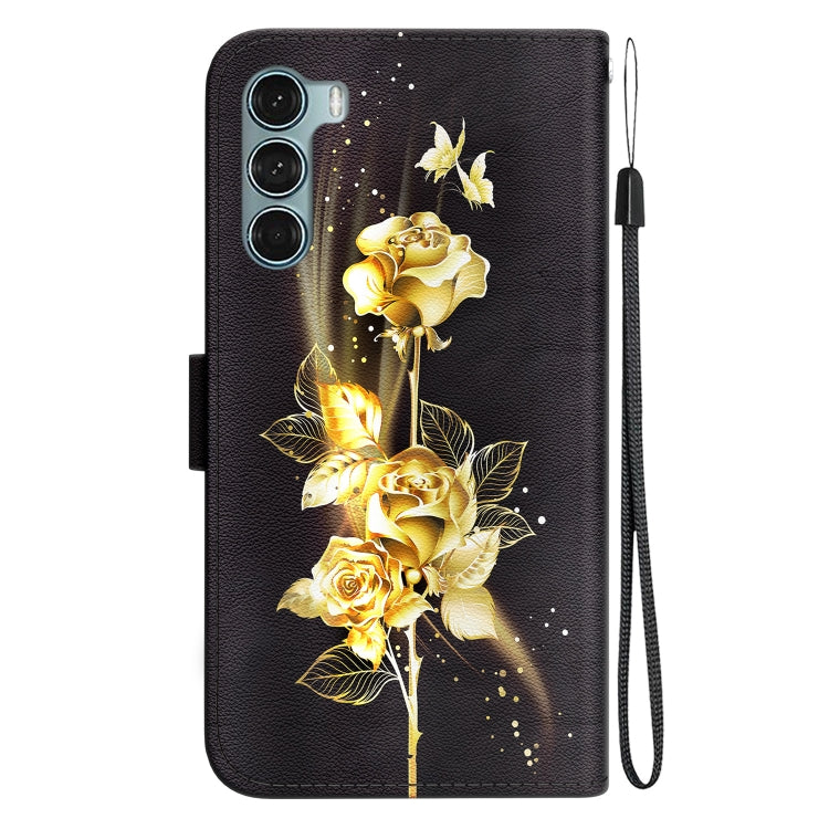 Funda de Cuero para Motorola Moto G200 5G con Dibujo Coloreado y Textura de Cristal (Mariposa Dorada Rosa)