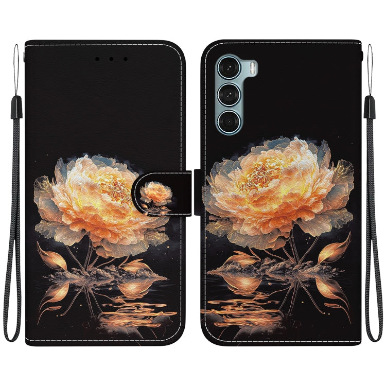 Funda de Cuero para Motorola Moto G200 5G con Dibujo Coloreado y Textura de Cristal (Peonía Dorada)