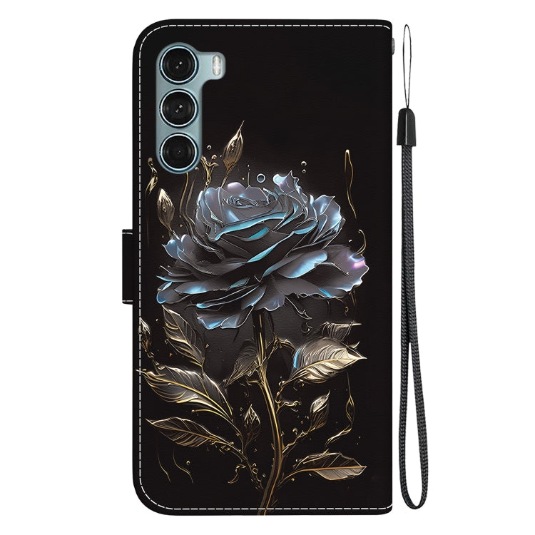 Funda de Cuero para Motorola Moto G200 5G con Dibujo Coloreado y Textura de Cristal (Rosa Negra)