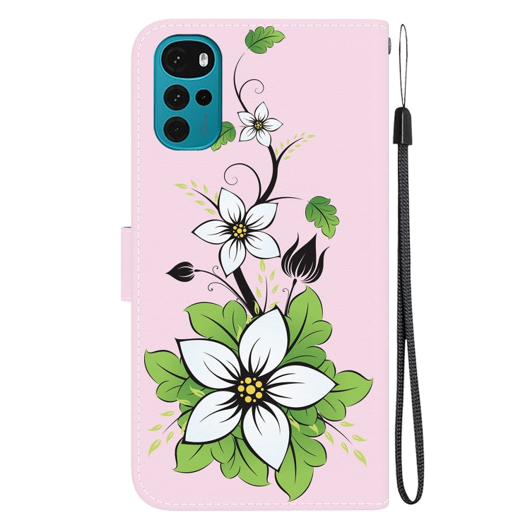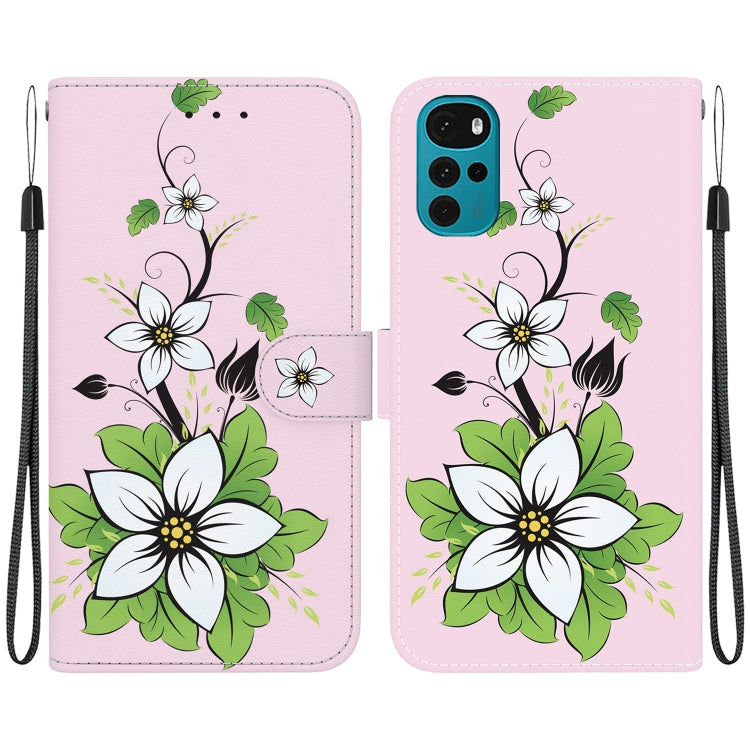 Estuche de Cuero para Motorola Moto G22 con Dibujo Coloreado y Textura de Cristal (Lirio)
