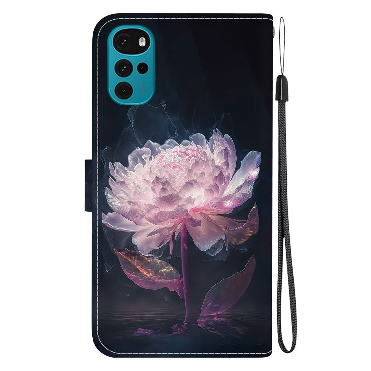 Estuche de Cuero para Motorola Moto G22 con Dibujo Coloreado y Textura de Cristal (Peonía Púrpura)